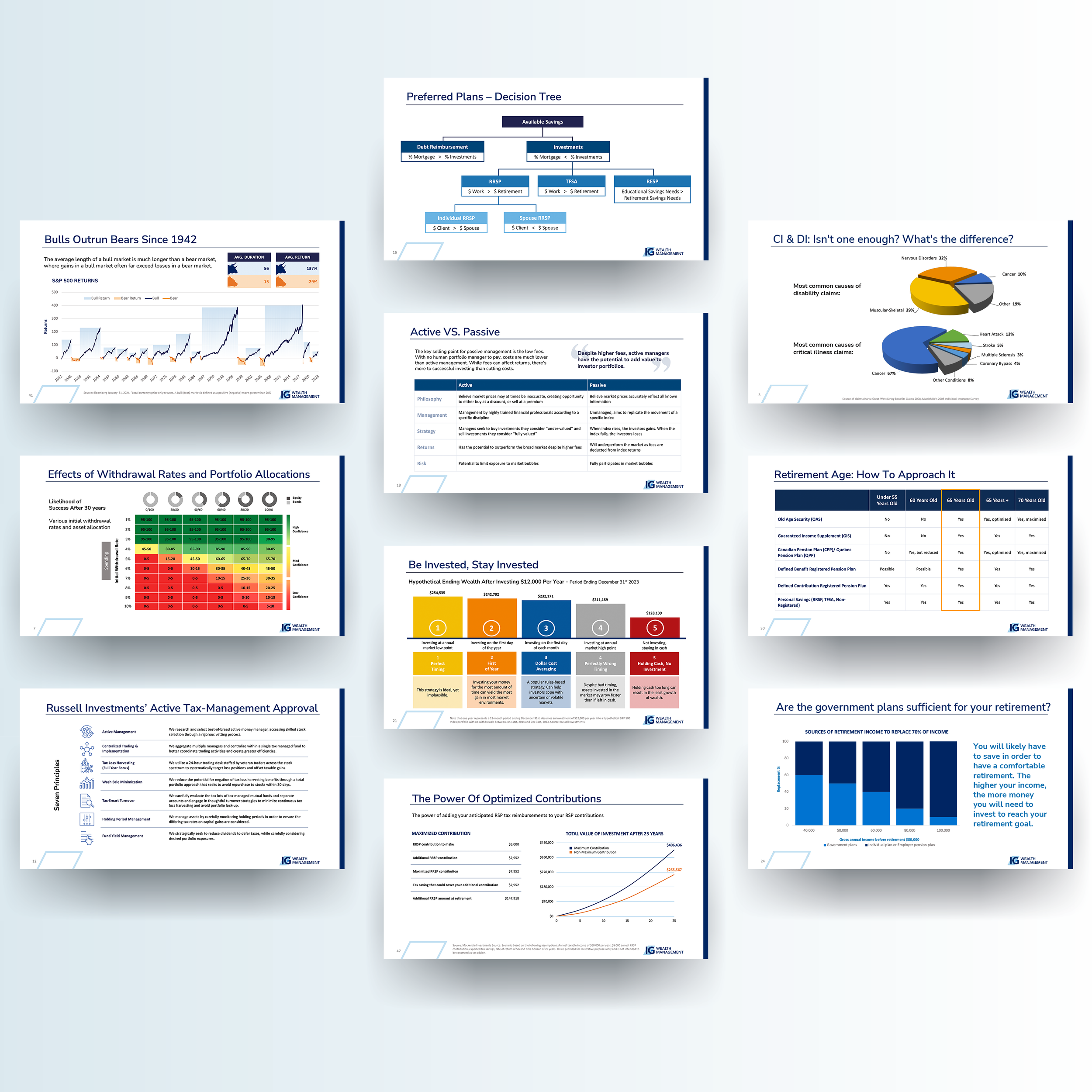 While working for IG Wealth I was responsible for designing new presentation slides and refining existing ones from previous years. These slides covered topics such as saving strategies, net income, retirement funds, property investments, financial management, and expenses. I enjoyed the challenge of developing engaging graphics that not only enhanced the visual appeal but also made the information clearer and easier for viewers to understand while staying within the company’s brand guidelines.